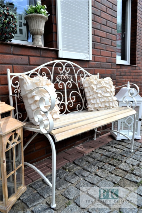 ŁAWKA KUTY METAL HOME & GARDEN Z DREWNIANYM SIEDZISKIEM W STYLU FRANCUSKIM , PROWANSALSKIM , SHABBY , LOFT.