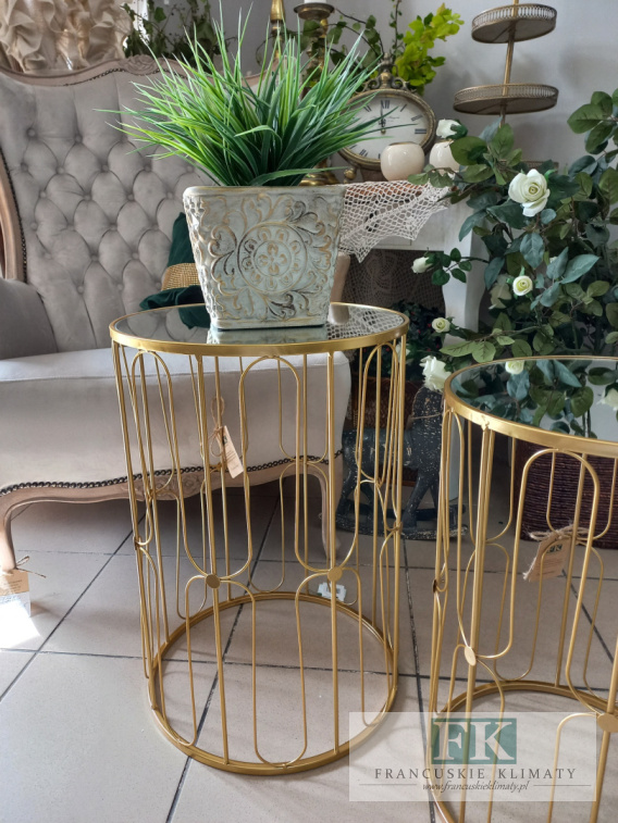 WYJĄTKOWY STOLIK METALOWY Z LUSTRZANYM BLATEM MAŁY (56CM)